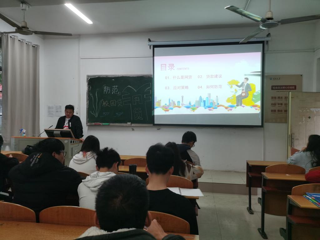 本次班会使同学们懂得谨慎贷款、合理消费,认清各类校园贷可能带来的风险,谨防受骗,学会自我保护。让学生充分认识到校园贷的危害,树立正确的消费观。辅导员和相关班主任对班会进行了指导。