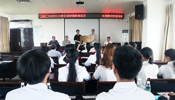 本网讯 5月16至17日,我院与荆州太湖港中学、荆州成丰学校、太晖小学共建教育实习基地揭牌仪式分别在各实习基地举行。副院长郭睦庚分别与太湖港中学校长胡俊、成丰学校校长谢忠共同揭牌,院长助理郭明虎与太晖小学副校长贺红霞揭牌。揭牌仪式前,双方负责人在实习基地召开的座谈会上致辞。数理系主任史千里、教学工作部有关负责人及相关教师、见习生参加仪式。仪式后,召开了见习生与指导老师见面会。数理系数学专业(师范类)49名见习生将于5月20日开始在上述各基地开展为期两周的教育见习。 通讯员 王慧颖 学生记者 朱海燕 见习记者 余军君 宋姜楠 摄影报道