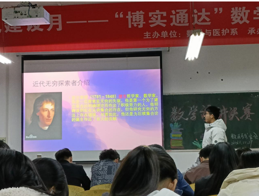 本网讯(见习记者 杨馨怡 赵家乐)11月29日19:00,我系在四教201成功举办了“博文通达”数学演讲决赛。本次决赛旨在在初赛的基础上再现精彩,展现出同学们的演讲能力,激发同学们对数学学习的兴趣。本次活动由学习部干事陈园园主持。
