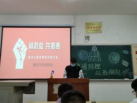 本次班会圆满结束,目前williamhill官网在全力以赴继续坚持做好做各项防疫举措,疫情还没有结束,我们就不能有半点的松懈。疫情就是命令,防控就是责任,大家上下一心,定能打赢这场没有硝烟的战争!
