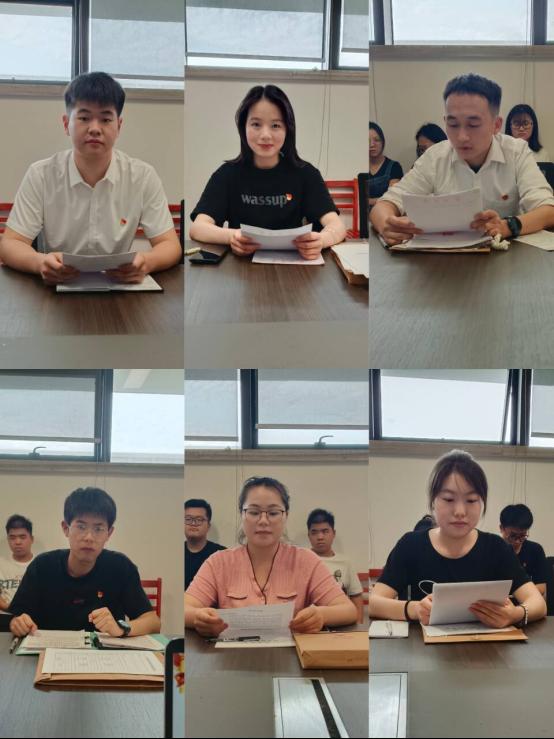 大会中,六名预备党员从思想、学习、生活和工作等方面向党支部汇报自己的现实表现,说明成绩和进步情况,找出自身的缺点和不足,并表明自己的态度和决心,以及需要向党组织说明的其他情况。随后,各位培养考察人介绍该预备党员的培养和考察情况,并对是否同意其按期转为正式党员表明意见和态度。接着由参会党员对丁嘉毅等六名同志能否转为正式党员进行讨论并发表意见。