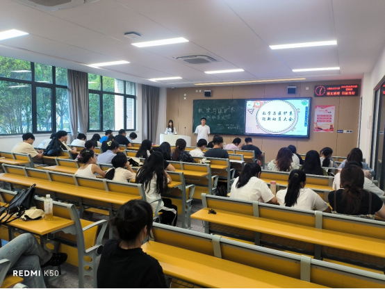 会议伊始,由学生代表吴飞帆介绍工作安排及整体流程,让每一位工作人员和志愿者了解自己的工作。然后,辅导员聂志老师上台发言。他叮嘱每一位志愿者尽心尽力的完成自己的工作。他表示:“迎新工作不仅是对新生的一次重要引导,更是展现我们学院风采和师生风貌的重要窗口。希望大家能够齐心协力,以高度的责任感和使命感,确保迎新工作的顺利进行。”会议最后,党总支副书记燕梦蝶号召全体工作人员要以新的姿态面对新生。每一位志愿者都是学校的形象代言人,我们的言行举止都将给新生留下深刻的印象。