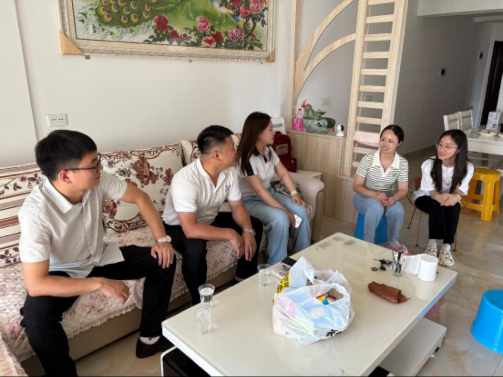 (本网讯)为持续深化“三全育人”内涵建设,凝聚家校协同育人合力,7月14日,数学与医护系开启了今年的暑期家访活动,系党总支书记左彪带队,副书记燕梦蝶、辅导员宋静静和聂志一同前往2023级董同学家中进行家访,送去学校的关怀与温暖,并就其学业发展与未来规划展开深入交流。