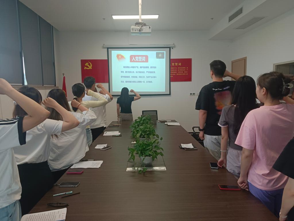 最后,全体党员面对党旗,重温入党誓词,进一步增强了党员的使命感和思想政治觉悟。