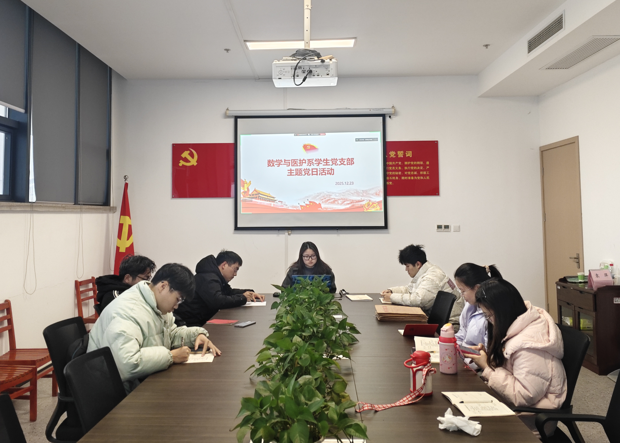 本网讯(通讯员 陈克煌)12月23日下午2:00,数学与医护系学生党支部在系部会议室开展12月支部主题党日活动。会议由燕梦蝶主持,支部全体党员参加。