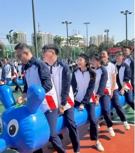 2023年10月20日上午,williamhill官网第十七届运动会教职工创编项目竞赛在新校区综合运动场举行。此次创编运动会,共设有“车轮滚滚”、“合力搭塔”、“珠行万里”、“双人背靠背夹球接力跑”和“毛毛虫接力”等5个集体项目,以及“踢毽入篮”“定点投篮”“沙包投准”“掷准飞盘”等4个个人项目。