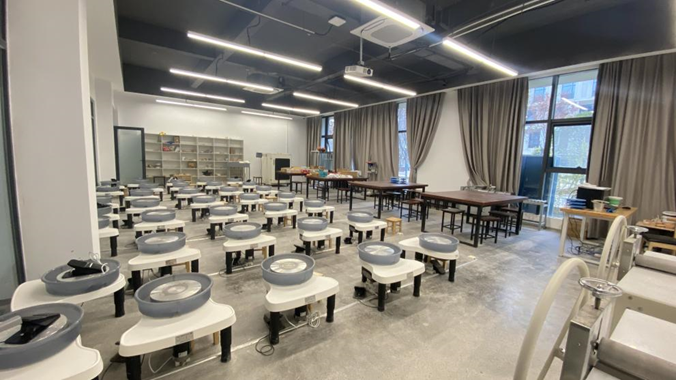 拉坯机、泥板机、泥条机、电窑、喷釉柜、手转盘、陶艺工具、陶泥、釉料等。