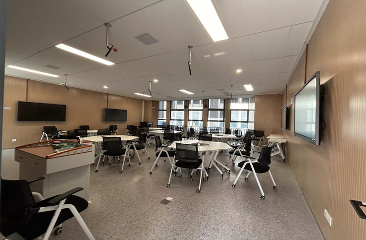 外国语学院实验实训中心之外语智慧教学中心,包括智慧教学展示室,微格教室,板书实训室,旨在开展外语教学技能的教学和实训。