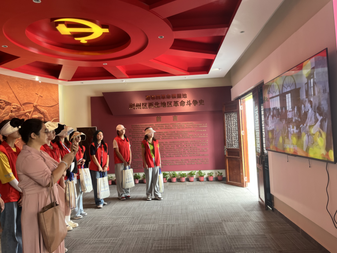 同学们搭车抵达蔡桥村后,进行了本次暑期社会实践活动的开班仪式,随后在蔡桥村工作人员的引领下进入革命斗争纪念馆了解了蔡桥文化,同学们纷纷表示,很难想象在离荆州如此近的地方居然发送过这么悲惨壮烈的革命事迹。参观完毕,同学们跟随烈士后辈郭代洪书记游览了蔡桥村部分景观以及红色遗址,郭代洪书记耐心地为同学们讲解,同学们身临其境,感触颇深。