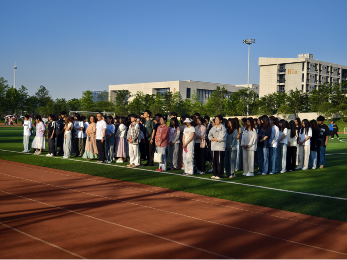 本网讯 5月12日清晨,马克思主义学院在田径场举行了以“筑牢安全防线,勇担青春使命”为主题的升旗仪式,马克思主义学院全体师生参与,仪式由思政5241班向祺娴同学主持。