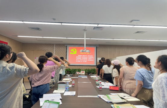在李天赐老师的领誓下,全体党员重温了入党誓词,然后集中交纳党费,并开展了理论学习。