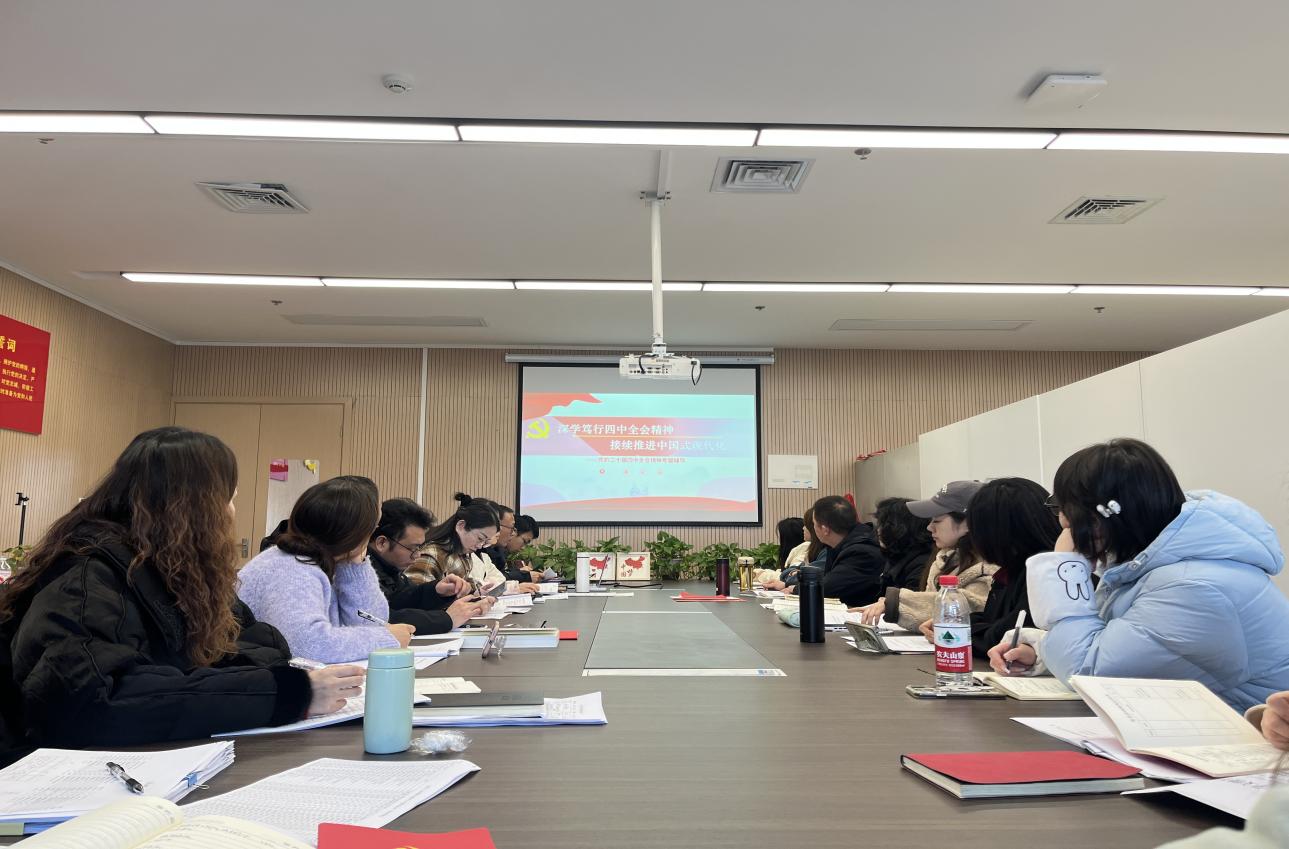 为持续深入学习宣传贯彻党的二十届四中全会精神,马克思主义学院院长谢俊丽给全体党员师生讲授了一堂专题党课,题为《深学笃行党的二十届四中全会精神,接续推进中国式现代化》,深度解码党的二十届四中全会的核心内涵,带领党员师生领悟党的二十届四中全会在历史交汇点上的重大意义,准确把握“十五五”时期我国发展环境的基本特征,解码中国式现代化的“十五五”行动纲领,并期望全体党员师生以实干实绩书写中国式现代化新篇章。