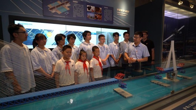 哈尔滨工业大学交通学院教师李顺龙在中国桥梁博物馆进行课程思政与桥梁科普。新华社发(张润 摄)