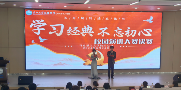 (通讯员:东含冰)2024年5月24日晚19:00,第十八届“五月风”科技文化节之“学习经典 不忘初心”校园演讲大赛于B-112学术报告厅华丽上演。校团委书记陈海波,马克思主义学院院长谢俊丽、副院长田丹出席活动。