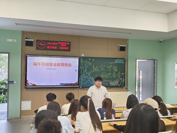 (通讯员陈冠宇)随着端午节临近,为增强学生安全意识,营造平安和谐的节日氛围,马克思主义学院各班级于近日分别召开端午假期安全教育主题班会。