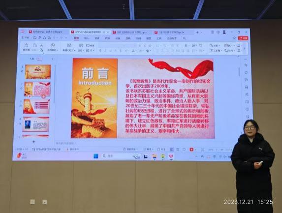 主题分享环节,读者协会成员代表们带来了《苦难辉煌》《为什么是中国》等优秀的红色书籍作品的悦读分享。让同学们了解到红色革命的精神内核,从而推动了活动主题。