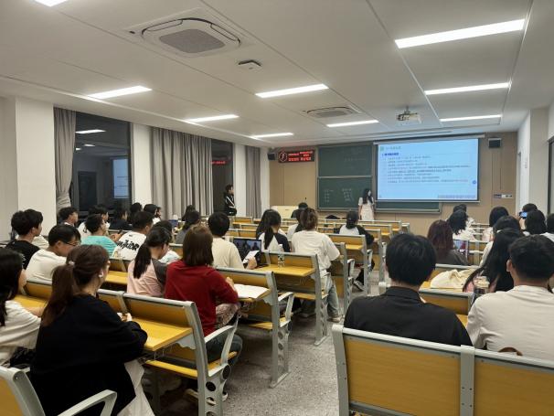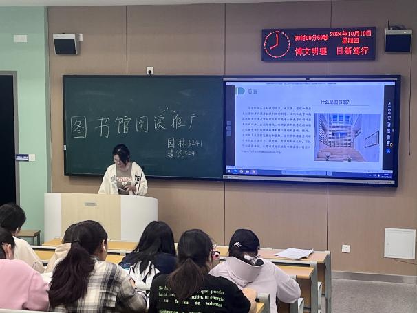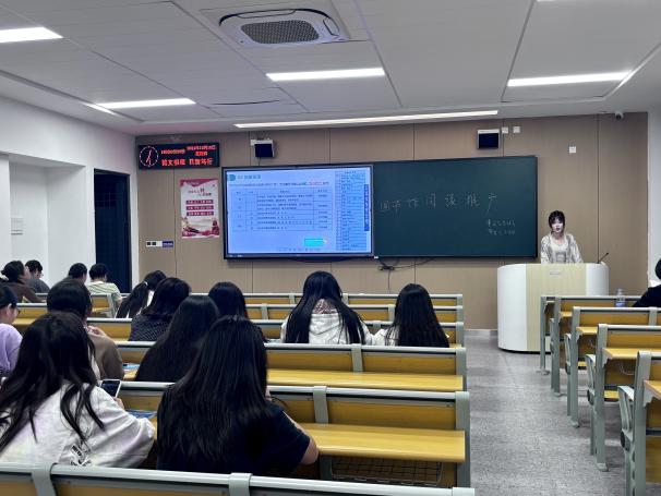 本次新生入馆教育,采取“学生推广员代表到馆与回班”的形式,实现知识的层级传递。在理论讲授阶段,教师李梦婷首先从馆藏分布、电子资源、规章制度、借还书操作、图书文献的分类排架规则等方面进行了详细地梳理与讲解;接着介绍了图书馆近一年举办的各类特色阅读活动。她指出阅读是获取知识、启迪智慧、塑造品格的重要途径,并鼓励新生日后积极参与图书馆举办的阅读活动,提升自身文学素养,丰富大学生活。