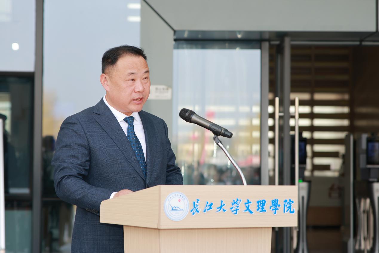 李兴祥在仪式上致辞,首先对湖北银行荆州分行捐资建设校史馆表示衷心的感谢,也向支持帮助学校建设发展的各位领导、校友和社会各界人士表达诚挚的谢意。他表示,校史馆是学校的一张靓丽名片,是一部见证了学校发展历程的历史画卷,要把校史馆打造成校友返校的“打卡点”、学生入学教育的“必修课”、思政教育的“大课堂”,让校史馆成为学校校园文化的载体、文化育人的阵地和对外宣传的窗口。