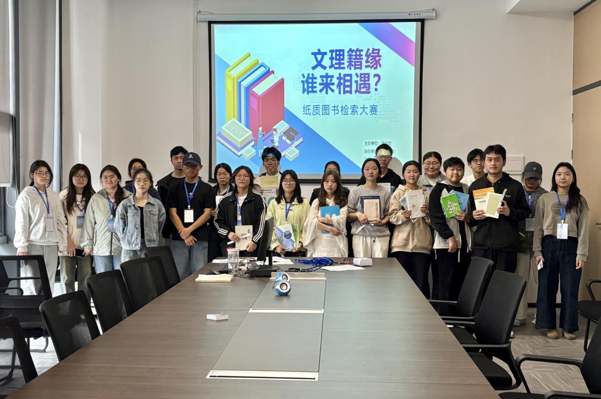 为深化校园阅读文化建设,提升学生信息素养能力,2025年3月27日15时,由图书馆主办、读者协会协办的“文理籍缘·谁来相遇?”纸质图书检索大赛在图书馆104会议室火热开启。本次活动以“趣探书海”为主旨,通过沉浸式竞赛形式,引导50余名参赛学生深度解锁图书馆资源利用秘籍。