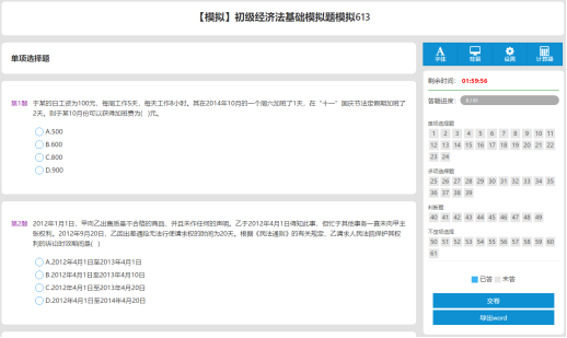 A. 点击 “初级会计 ” 的 “模拟试题”,进入模拟试题详细页面,