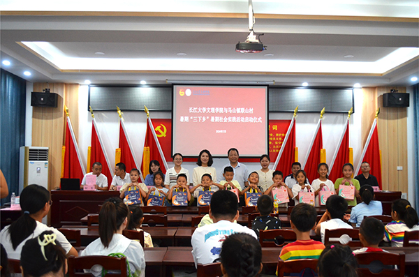 马山镇副镇长葛平平代表镇政府致辞,欢迎志愿者们的到来,感谢他们为小朋友安排了多彩的假期生活。