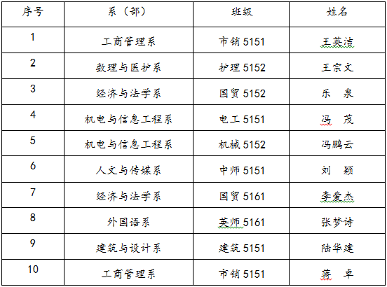 如对以上“十佳大学生”人选存有异议,请及时向学生工作部罗老师反映,联系电话0716-8068058。