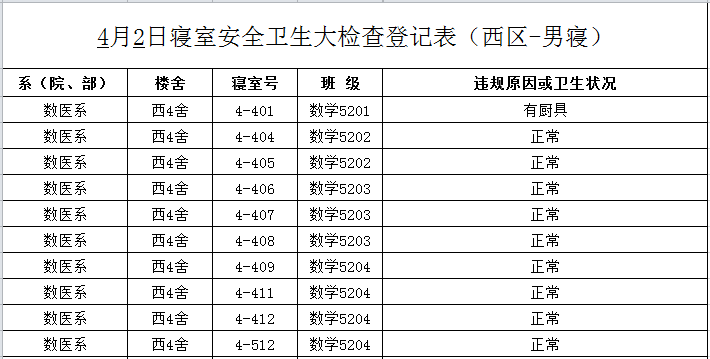 2020-2021学年第二学期第5周寝室检查结果通报