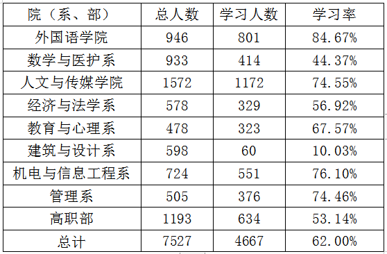 williamhill官网十一季第三期青年大学习各院(系、部)学习情况公示
