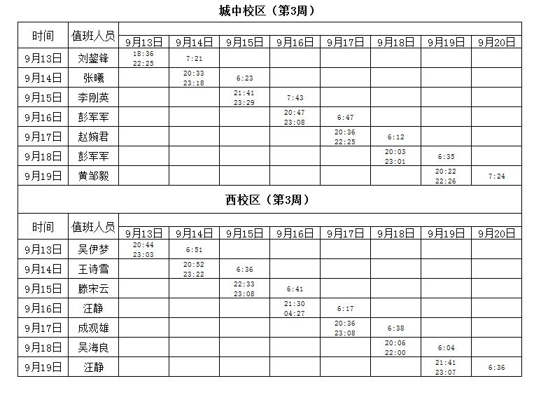 2021-2022学年第1学期第3周学工人员寝室值班通报