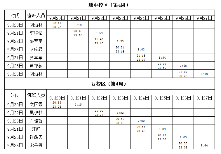 2021-2022学年第1学期第4周学工人员寝室值班通报