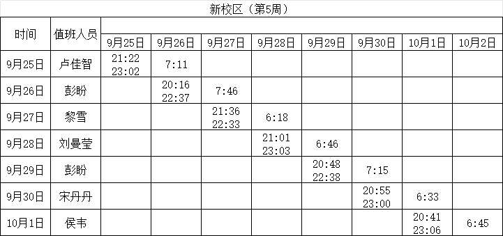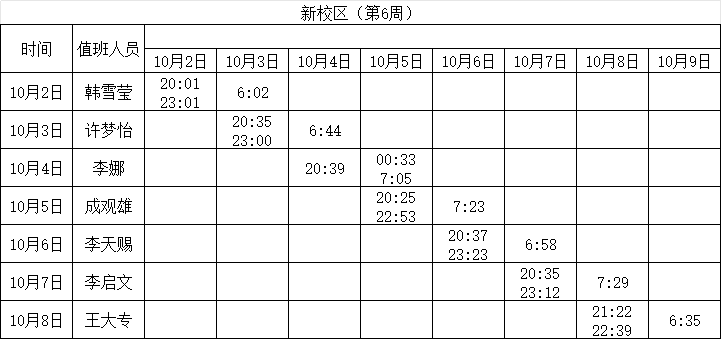 2023-2024学年第一学期第5-6周学工人员寝室值班通报