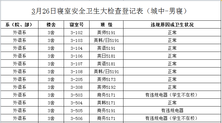 2020-2021学年第二学期第4周寝室检查结果通报