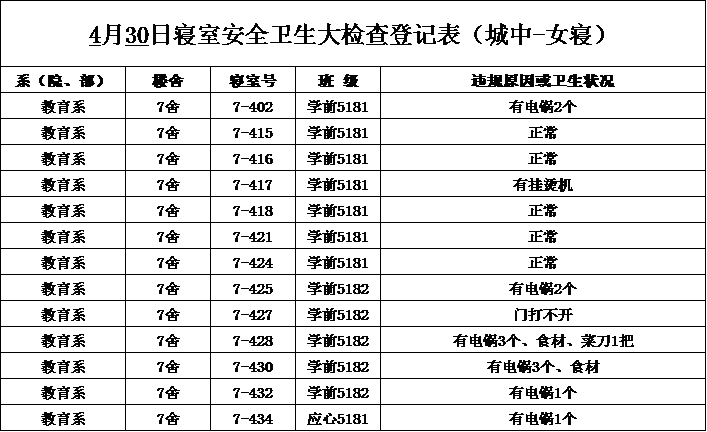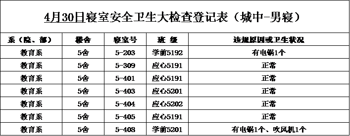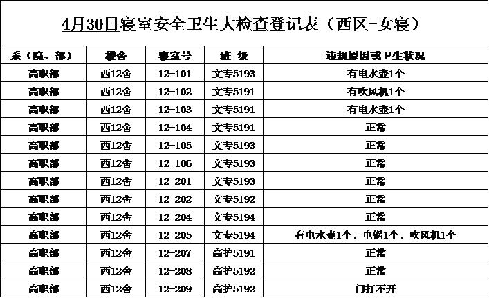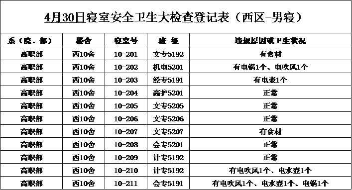 2020-2021学年第二学期第9周寝室检查结果通报