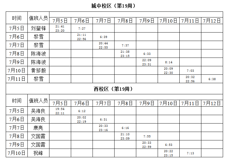2020-2021学年第二学期第18-19周学工人员寝室值班通报