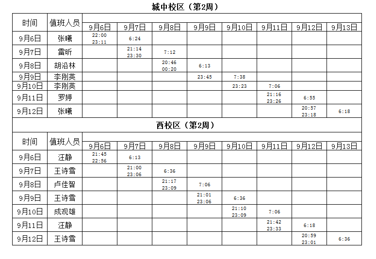 2021-2022学年第1学期第2周学工人员寝室值班通报