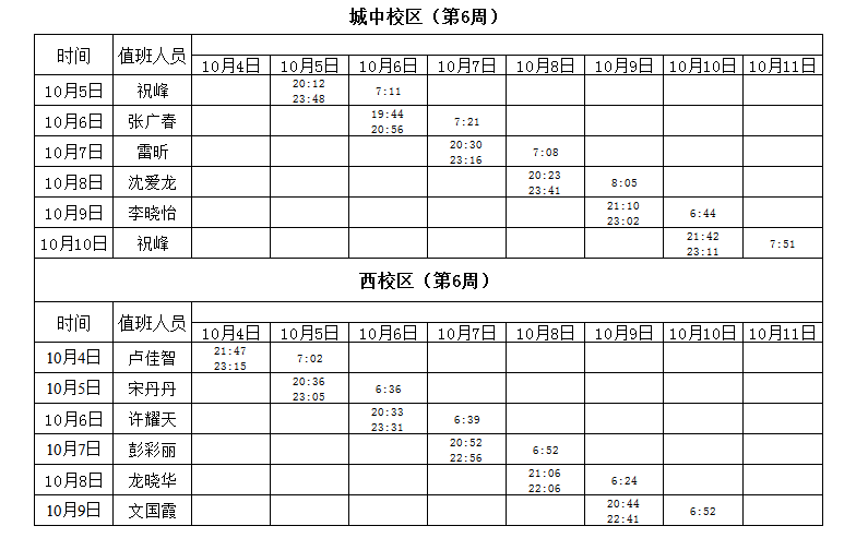 2021-2022学年第1学期第5-6周学工人员寝室值班通报
