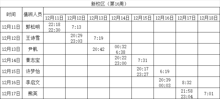 2023-2024学年第一学期第14-16周学工人员寝室值班通报