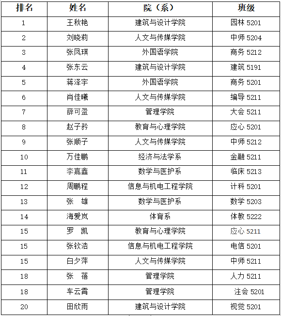根据《williamhill官网“十佳大学生”评选办法》要求,经个人申请、各教学单位推荐、评审办公室审核,现将第九届“十佳大学生”候选人名单及候选人排名情况公示如下: