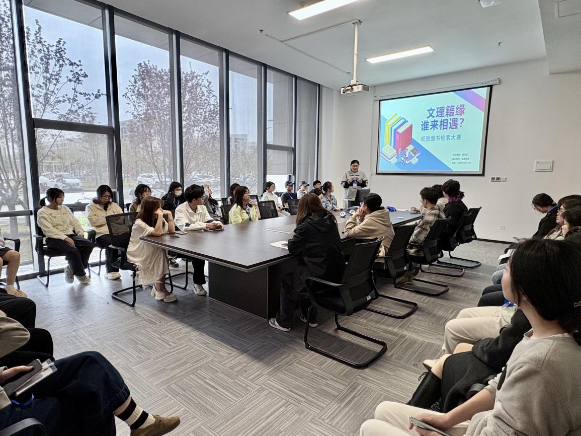 为深化校园阅读文化建设,提升学生信息素养能力,2025年3月27日,由图书馆主办、读者协会协办的“文理籍缘·谁来相遇?”纸质图书检索大赛在图书馆104会议室火热开启。引导近200余名学生深度解锁图书馆资源利用秘籍。
