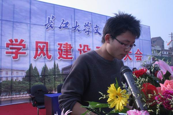 会上,学工处主任彭中同志宣读了《关于加强我院学风建设的意见》的文件精神,强调要狠抓学风建设系列活动的落实情况。教师代表张广耀、学生代表袁咏心分别代表教师和学生发言,表达了积极参与学风建设方面的决心;学生干部陈慰同学代表院团委、院学生会向全院同学发起倡议,鼓励全体同学积极参与学风建设,共同营造一个良好的学习氛围和环境。