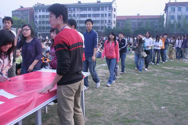 最后,本次大会在“良好学风,从我做起”的签名活动中顺利结束。会议结束后,学院领导及全体师生纷纷签名。本次动员大会的召开,标志着学院学风建设月活动的正式启动,在接下来的一个月里,学院将开展关于学风建设的一系列活动,努力实现学院学风建设的根本好转。此次活动也是学院认真贯彻“十七大”精神和全国“两代会”精神,落实“教育为本,德育为先”教学理念的具体体现。