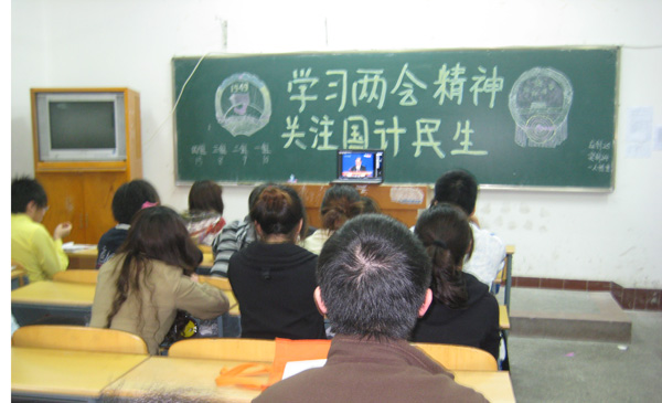 本网讯(通讯员 蔡唯)为了增强大学生对时政热点的了解,知晓时势,加强政治学习,提高思想政治觉悟。经贸学部积极引导同学们学习“两会”精神,并于3月18日晚在各班开展了一次关于“大学生看两会”的政治学习。