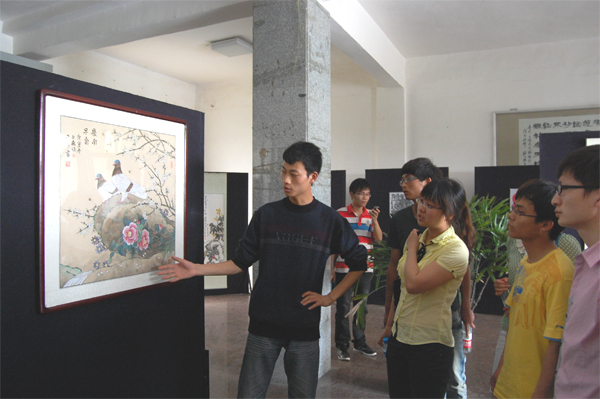 下午四点,交流会结束后,我院书法协会会长秦巨森带领着兄弟学校的朋友们参观了一教大厅前的书画展,同学们纷纷畅谈对艺术的理解,分享独特的创作经验。