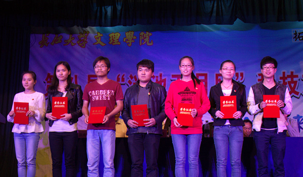 学院党委副书记汪邦柱上台讲话。他勉励广大团员青年传承和弘扬五四精神,坚定中国特色社会主义理想信念,积极培育和践行社会主义核心价值观,代表学院党委、行政向全体文理青年提出三点希望,一是树立建设“富强、民主、文明、和谐”的社会主义国家理想与追求,二是积极参与构建“自由、平等、公正、法治”的文明社会的实践与服务,三是积极培养“爱国、敬业、诚信、友善”的个人情操。他鼓励同学们在为期一个月的科技文化节上,积极展现自我,为青春喝彩,为青春点赞,用青春的火热点亮文理的天空,用青春的热情赢得未来。