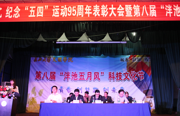 本网讯(见习记者 刘璐)5月4日晚,纪念“五四”运动95周年表彰大会暨第八届大学生“泮池五月风”科技文化节在我院工会大厅隆重举行。学院领导汪邦柱、王学峰出席开幕式,各行政部门及系部负责人参加盛典。