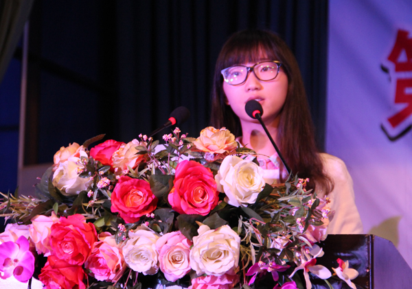 中文5112班黄晶与会计5115班饶一池作为学生代表分别上台发言,通过畅谈自身人生理想,激励同学们用行动践行中国梦、青春梦。