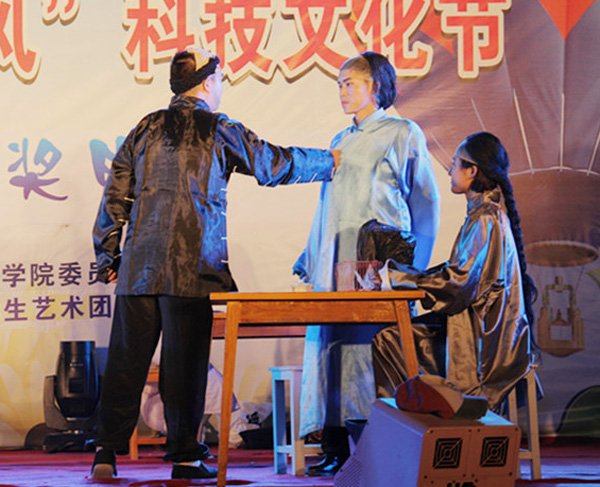 人文与传媒系带来的话剧《茶馆》,以精心的编排和栩栩如生的表演将晚会现场气氛推向高潮,观众席荧光棒闪耀,不时传来欢呼声和掌声。