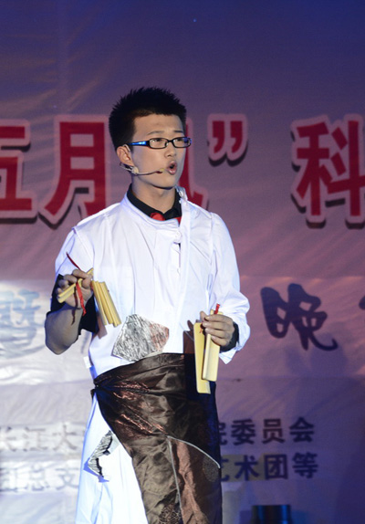 大学生艺术团的学子以一曲热辣奔放的开场舞《My now》点燃了现场氛围,拉开了晚会大幕。深情动人的诗朗诵《我的南方北方》表达了作者对祖国山川的热爱,个性张扬的歌曲《逆态度》和《私奔到月球》,彰显了当代大学生鲜明独特的主张,温柔细腻的情歌《不要说话》,古韵十足的舞蹈《玉生烟》及秀色可餐的礼仪风采展示等,令现场观众啧啧称好,不时报以热烈掌声。