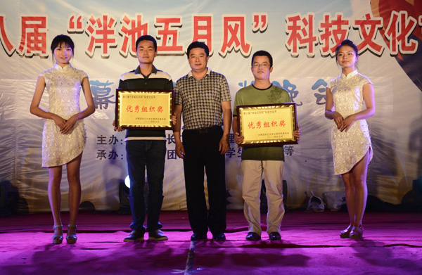 院领导为此次“泮池五月风”科技文化节各项比赛中获奖的选手代表颁奖。人文与传媒系、经济与贸易系获本次文化节的优秀组织奖。