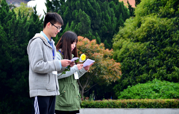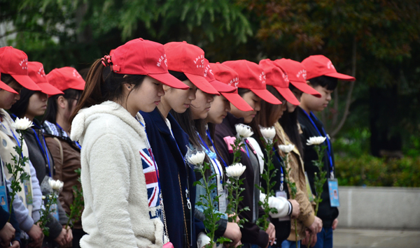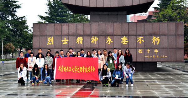 院团委由团委书记刘磊和伍晚芳老师带队,青年志愿者们在纪念碑前开展了“默哀、致悼词、献花”活动。
